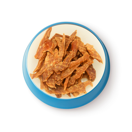 Dehydrated chicken infused with turmeric to support joint health and overall wellness, made safe for daily treating.