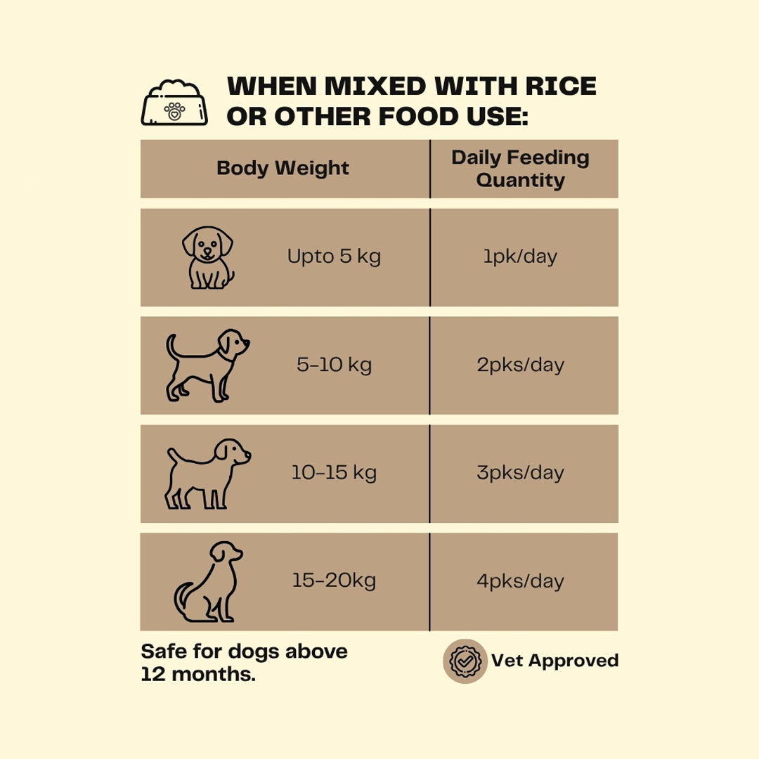No. It’s free from onions, garlic, excess salt, or chilies. Only mild, dog-appropriate ingredients are used to ensure it’s both safe and delicious.