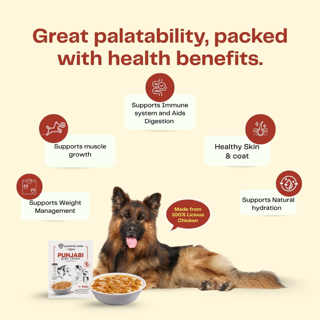 Inspired by India’s favourite curry! A light, hydrating chicken gravy made safe for dogs — high in protein, vet-approved, and crafted with 100 % Licious meat.